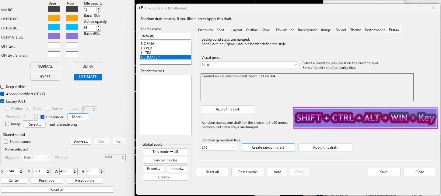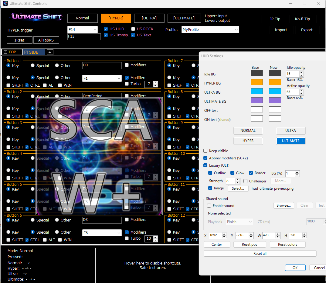 The system allows you to build input layers such as Normal, Hyper, Ultra, and Ultimate and visualize them through a built-in HUD.